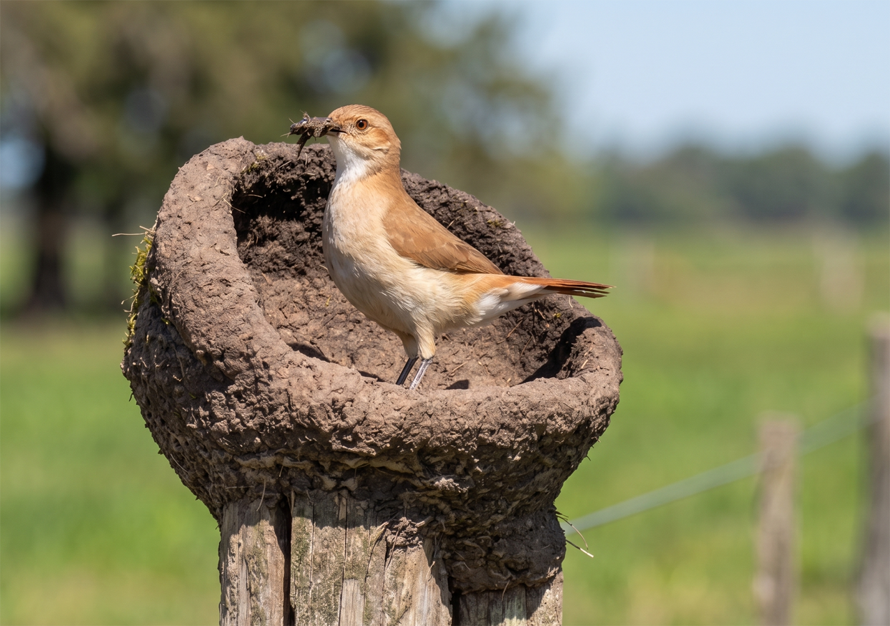 El hornero (Furnarius rufus), nuestra Ave Nacional desde 1928, es un arquitecto prodigioso. Sus nidos de barro pueden pesar entre 4 y 5 kilos y soportar hasta 100 kilos de presión, manteniéndose firmes ante el sol y las tormentas. A pesar de su resistencia, cada año construyen uno nuevo, mientras que el anterior es utilizado por otras especies para nidificar.